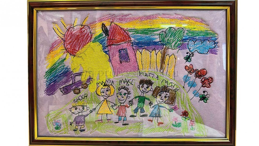 В разделе новостей делимся работой, которая всегда вызывает особые эмоции. Мы занимаемся вышивкой детских рисунков на заказ и бережно переносим на ткань те маленькие истории, которые ребёнок передал в своём творчестве. Каждая линия, каждая деталь и даже неровность имеют значение — именно в них живёт неподдельная детская фантазия.