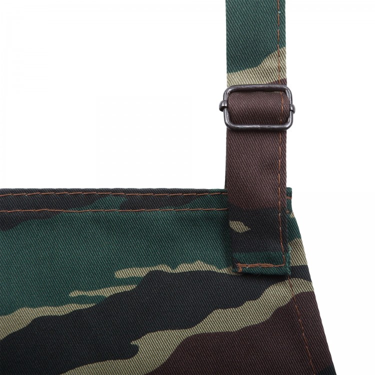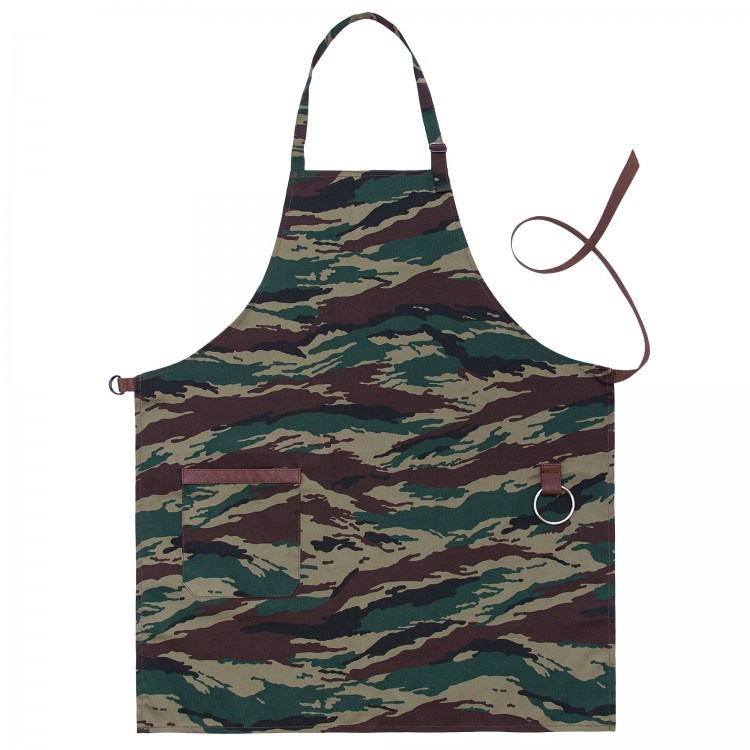 Фартук из надёжной, плотной ткани с водоотталкивающей пропиткой. Имеется большой, удобный карман и специальный держатель для полотенца.Держатель представляет собой металлическое кольцо, на кожаной пряжке.