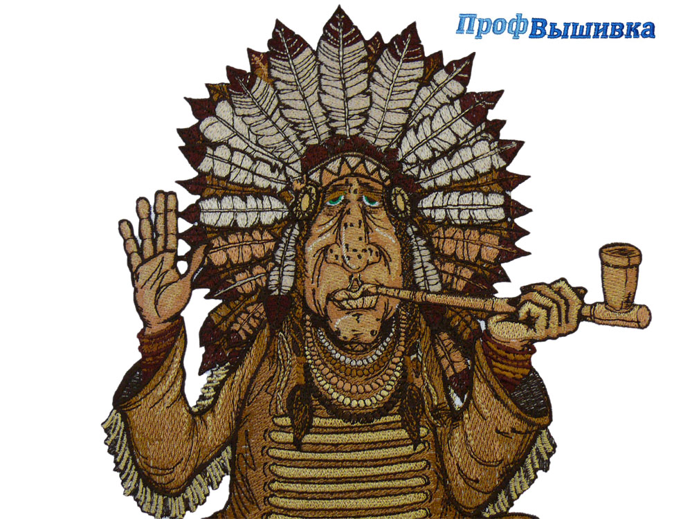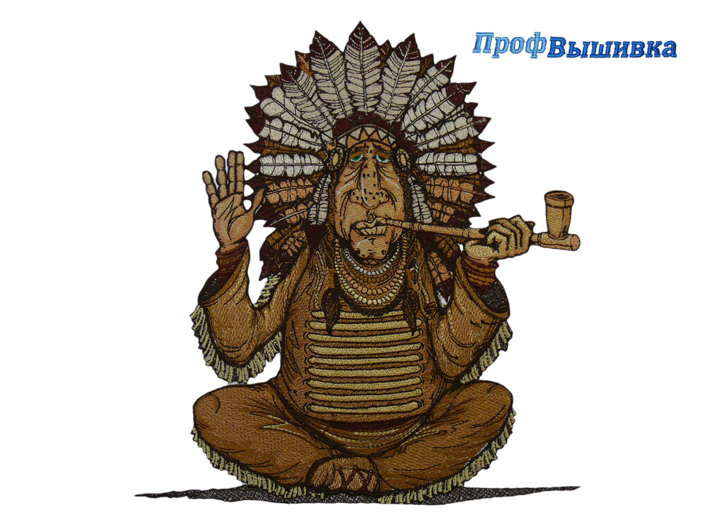 В данной вышивке Машинная вышивке «Индеец» использовалось 12 цветов ниток, и это не предел. При необходимости можно использовать и большее количество цветов.