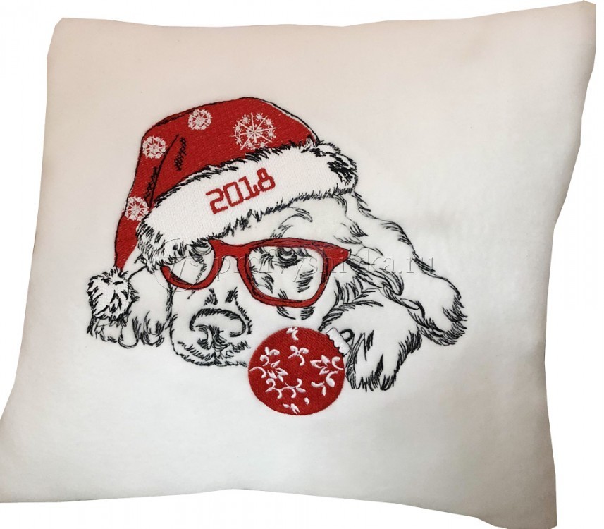 Предлагаем вашему вниманию новогодний подарок! Подушка с новогодней вышивкой. Вышивка в виде собаки. Собака - символ 2018 года. Такая красивая подушка украсит любую комнату, пригодится в любом автомобиле. Принесут удачу в течении года её обладателю!