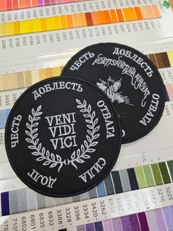 Вышивальные машины последнего поколения работают с любым текстилем. Поэтому можно заказать вышитые нашивки на куртку, футболку, блузку, аксессуары.