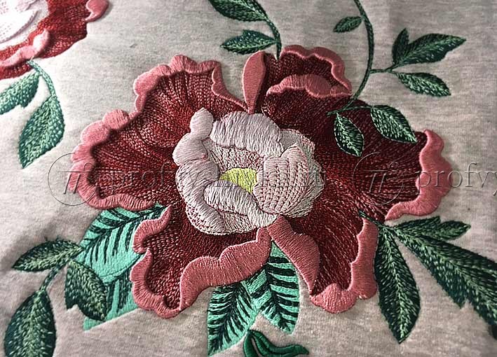 Любой выбранный рисунок будет с абсолютной точностью перенесен на платье. Электронные программы современного вышивального оборудования гарантируют качественное нанесение заданного изображения.
